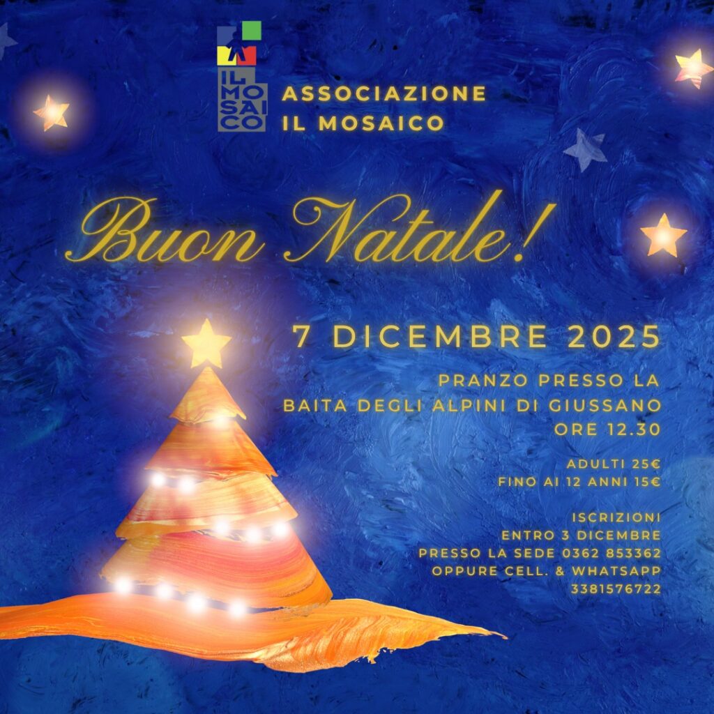 L’invito è rivolto a tutti coloro che vogliono trascorrere un momento di festa con gli amici della Associazione Il Mosaico. Tutte le informazioni sono presenti nella locandina allegata.